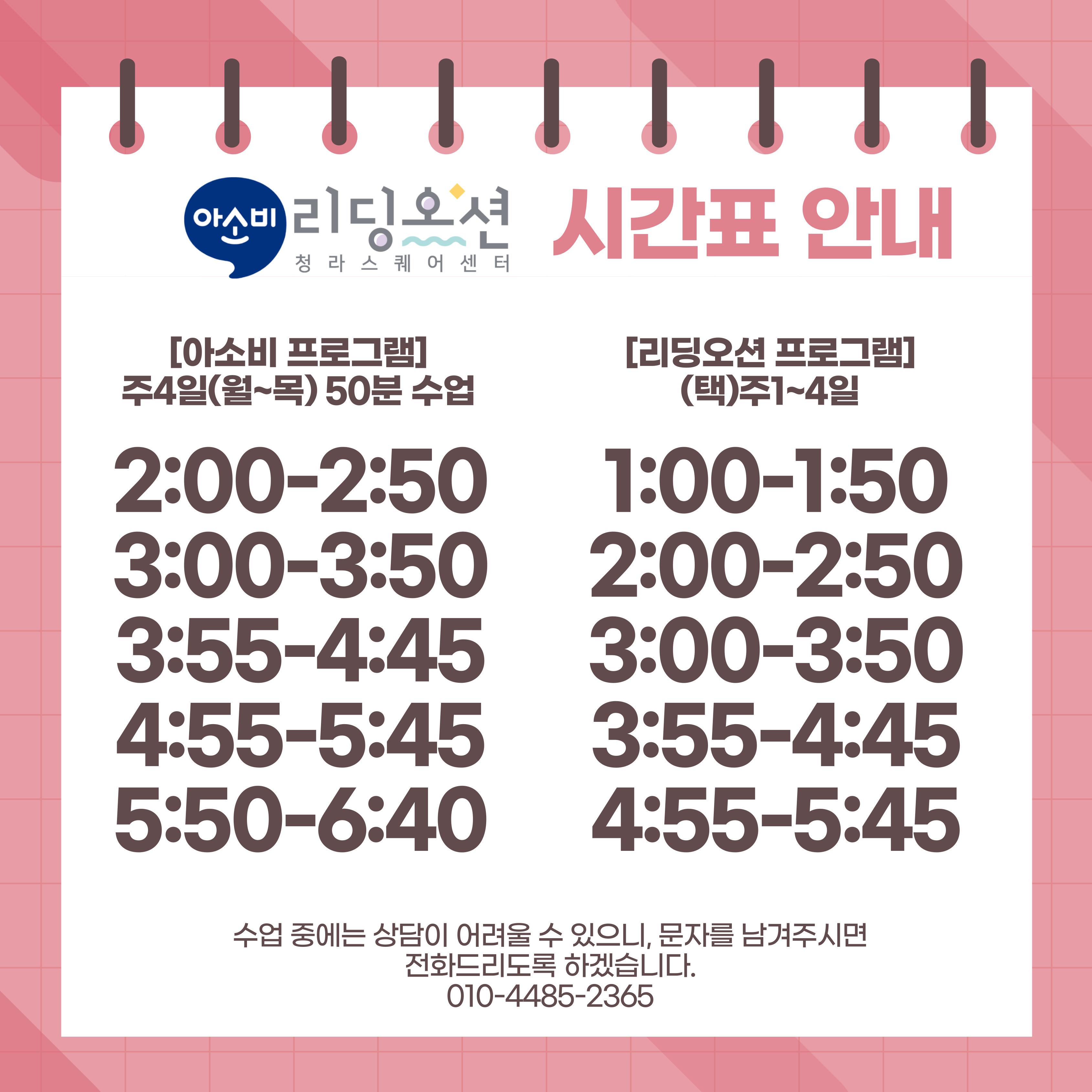| 아소비 리딩오션 청라스퀘어센터 4월 학사 일정 안내 (0) | 2024.04.02 |